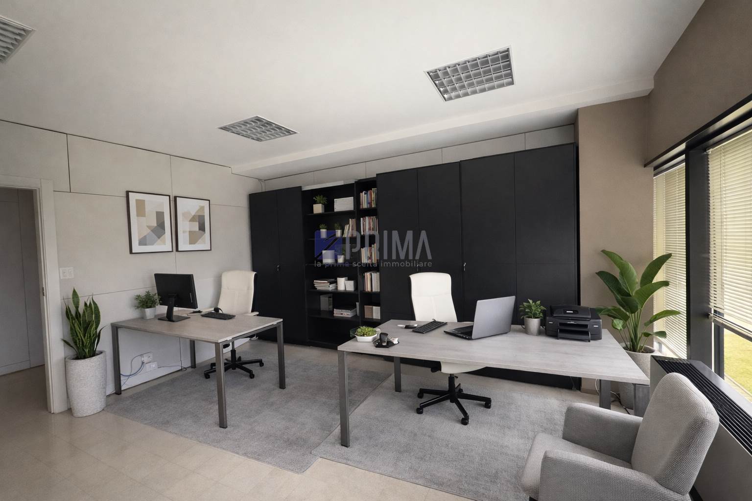 Gli ambienti sono razionalmente distribuiti e consentono una gestione operativa immediata, con spazi già predisposti per postazioni multiple, uffici direzionali e aree collaborative.