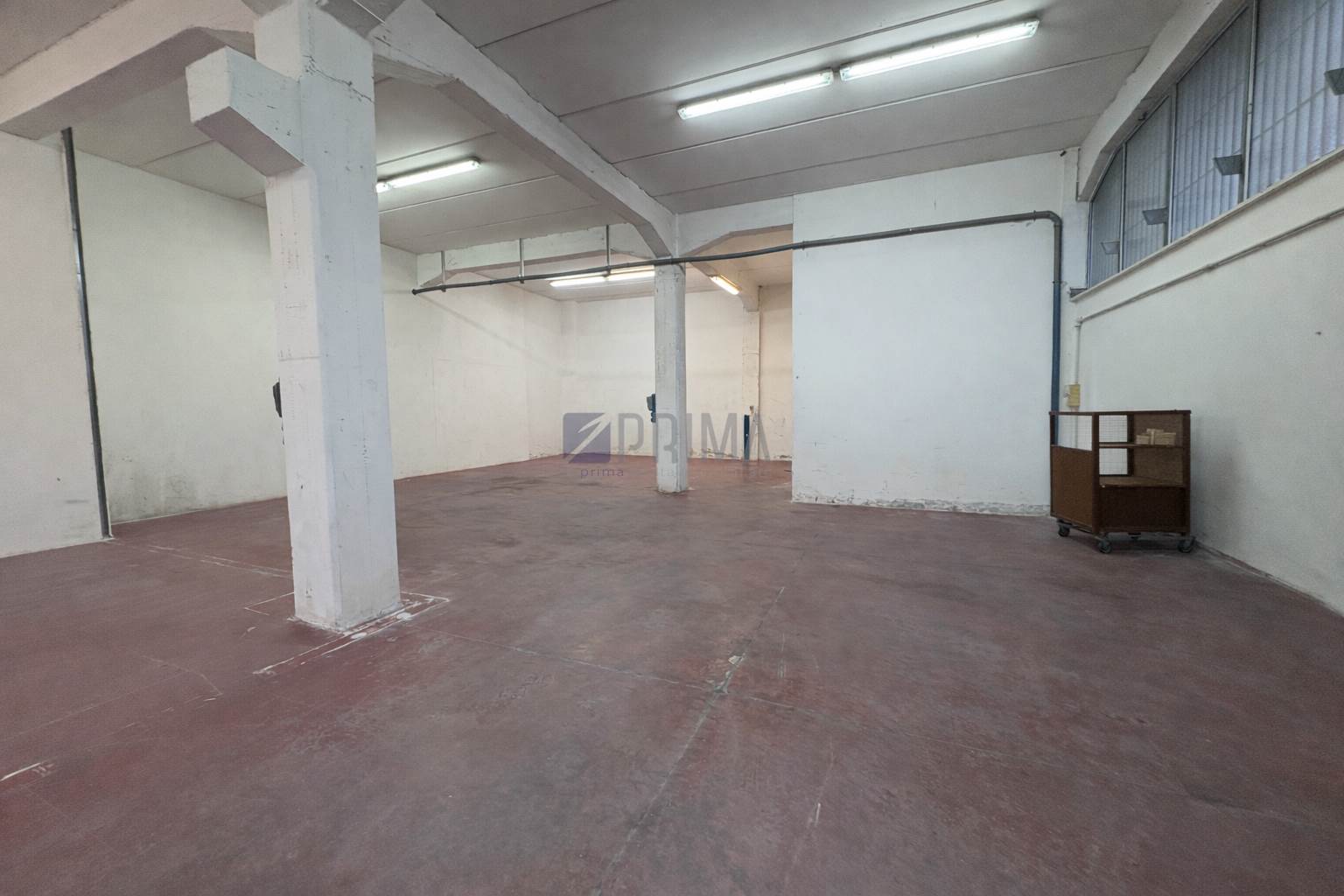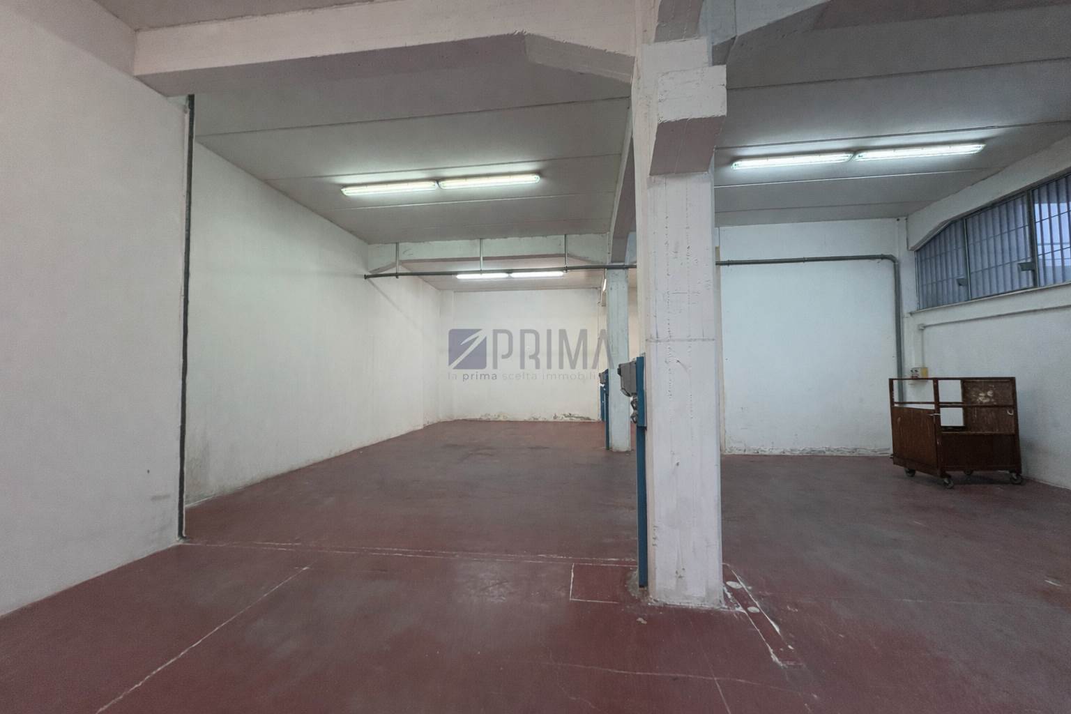 Internamente si presenta come open space, con struttura a pilastri, pavimentazione industriale e illuminazione già presente.