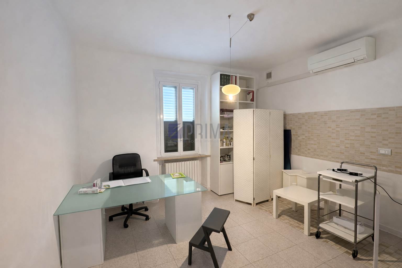 La soluzione è particolarmente adatta per studi tecnici, studi professionali o studi medici. L’ufficio è inoltre dotato di split per aria calda e fredda, che garantiscono comfort durante tutto l’anno.
