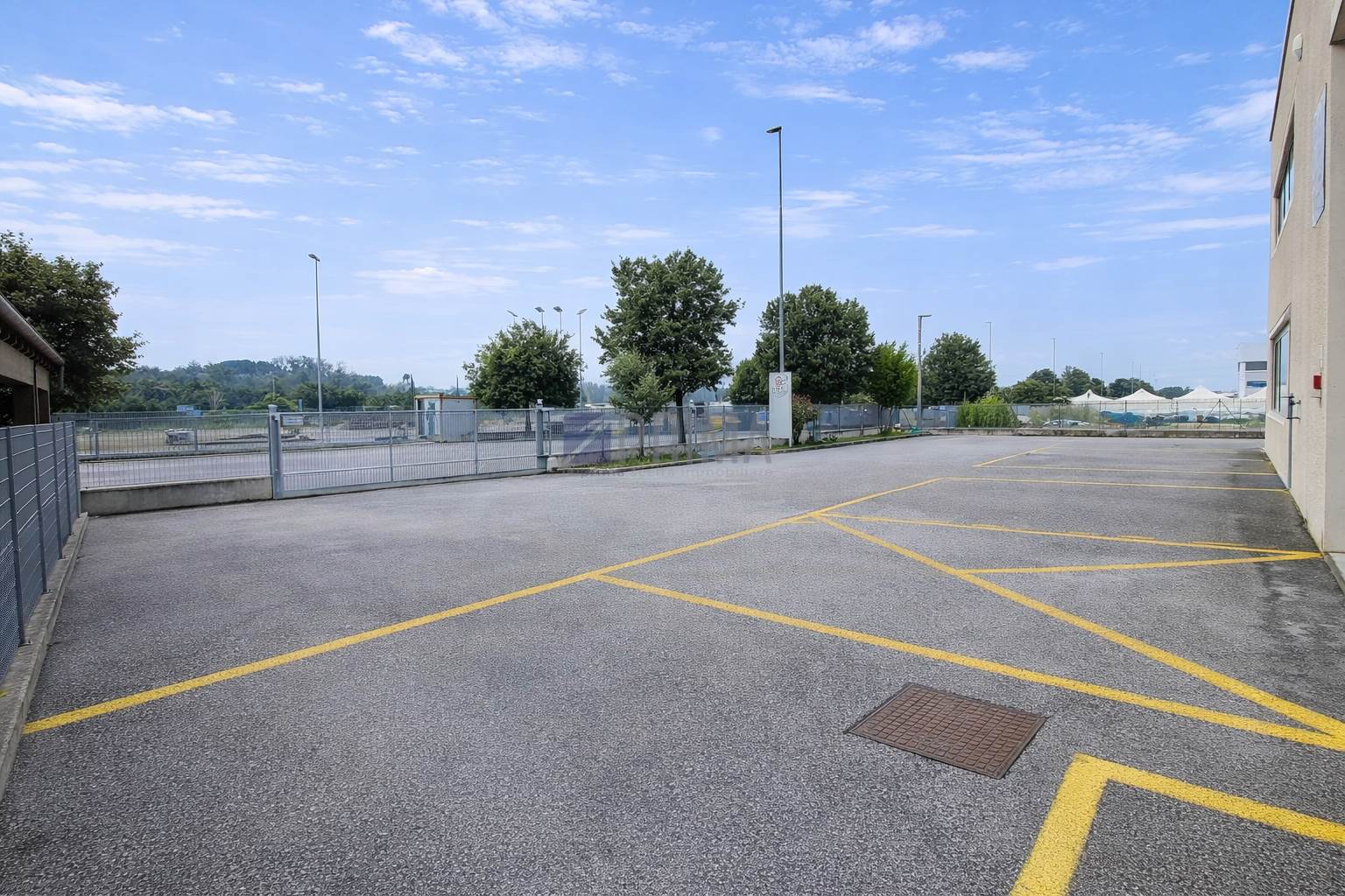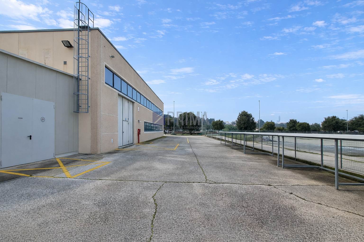 L’immobile si sviluppa su tre lati liberi ed è dotato di ingresso pedonale ed ingresso carrabile sul fronte principale. Il piazzale di pertinenza circonda la proprietà su due lati e consente agevoli manovre anche a mezzi pesanti, bilici e rimorchi, elemento di particolare valore per attività che prevedono movimentazione merci.