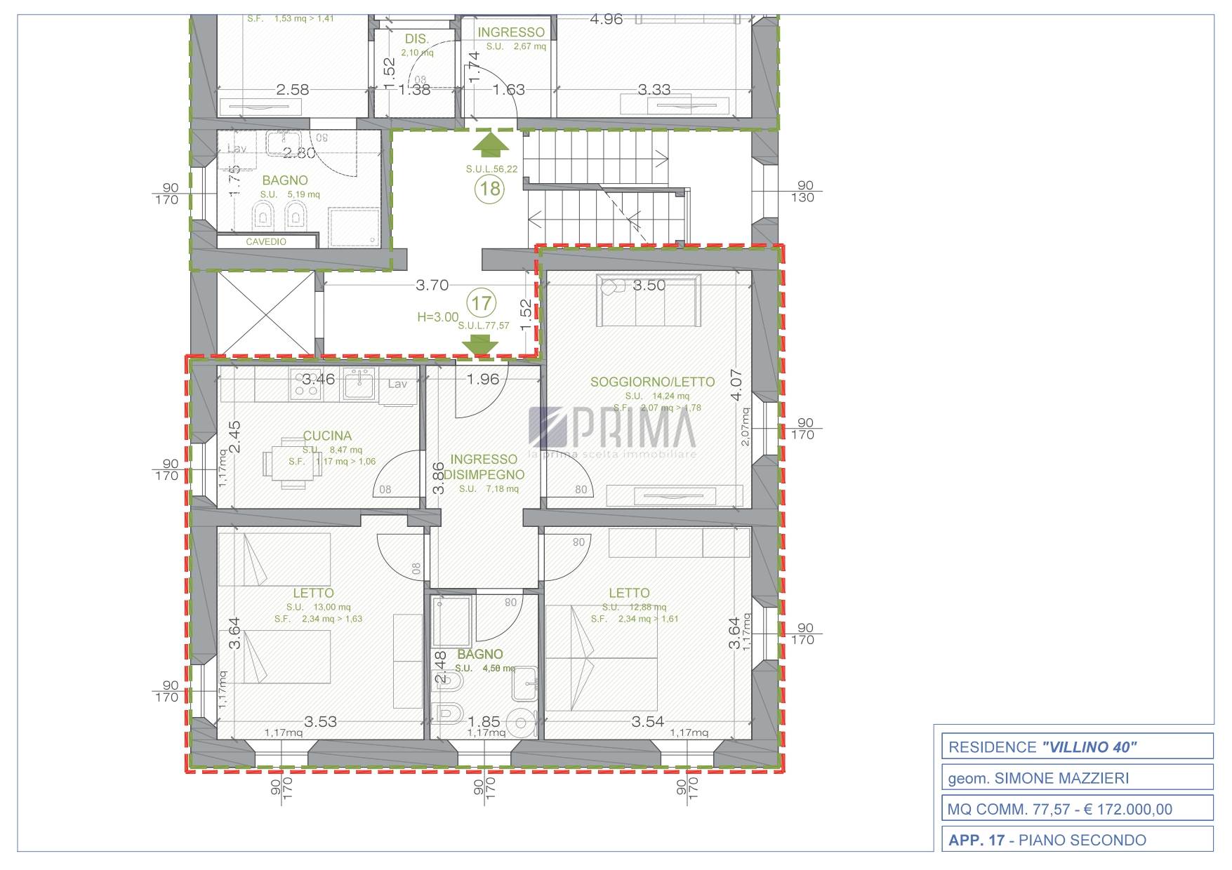 Tipologia Appartamento | Superficie 77,57 mq | Locali 3 | N. Bagni 1 | Posti auto 1 |