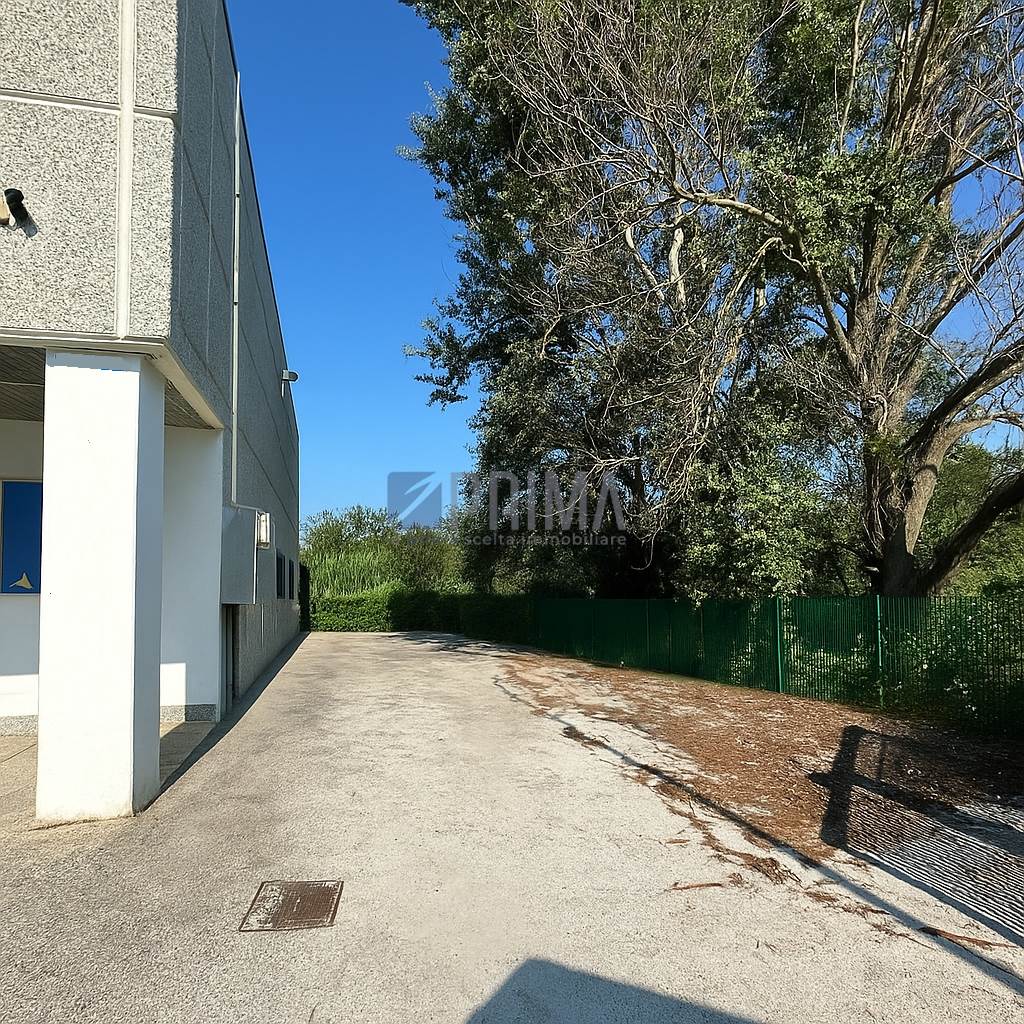Il piazzale di pertinenza circonda l’immobile sui tre lati, non risultando però adatto all’accesso di mezzi pesanti con rimorchio o bilici.