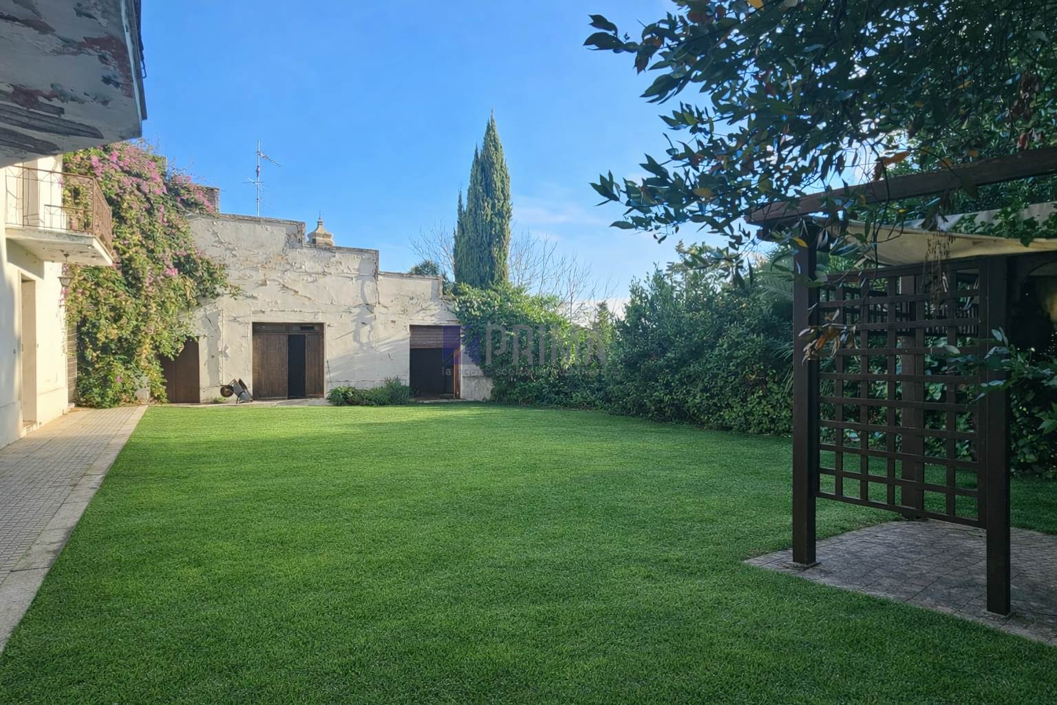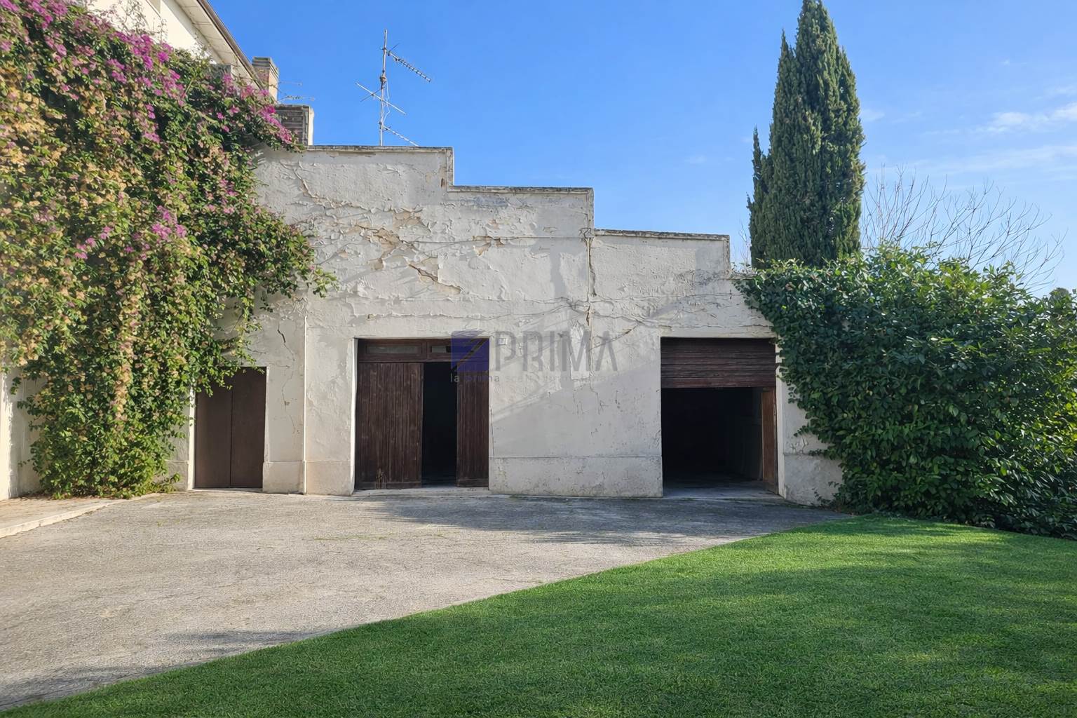 Complesso residenziale con tre unità, giardino esclusivo e ampi accessori