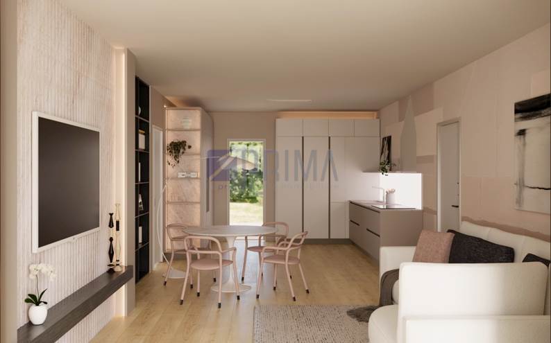 La zona giorno, luminosa e accogliente, è composta da un soggiorno con cucina open space; la zona notte comprende tre camere da letto, una camera matrimoniale e due camerette, un bagno finestrato ed un bagno di servizio, progettati per garantire funzionalità, privacy e comfort.